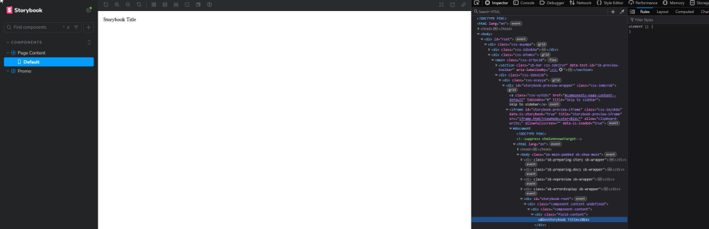 Let’s make our own story, though. Something simple. Maybe for the PageContent component. It’s just text, after all. Go ahead and create a PageContent.stories.tsx under the PageContent folder in Components. I personally prefer to keep the stories side-by-side with my components because that’s the right way to do it. You don’t put your eggs all over the house do you? All in the same spot. Anywayyyyyyy here’s the contents of that new stories file:
