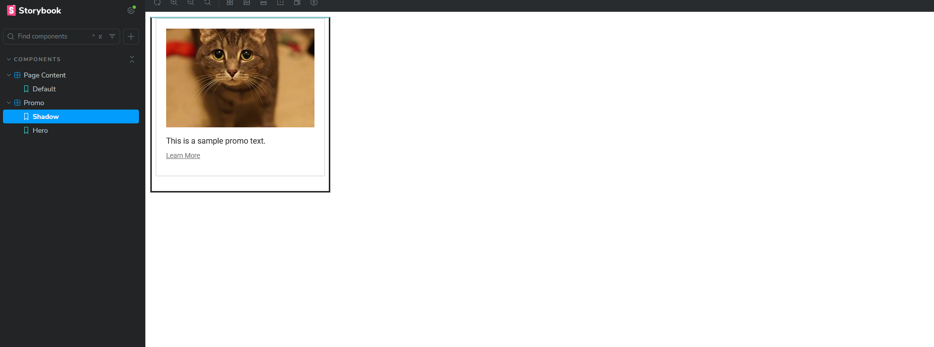 Let’s do something a little more complicated, though. Maybe that fancy Promo with Image, some links and some text. Again, we’ll create that Promo.stories.ts in the Promo folder: